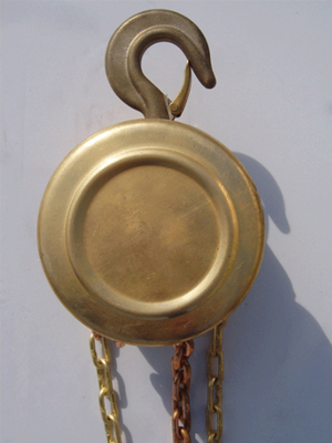 通過拽動手拉鏈條帶動手拉鏈輪、摩擦片、棘輪、制動器座、五齒長軸、片齒輪、短軸齒輪、花鍵孔齒輪、起重鏈輪轉(zhuǎn)動,最終帶動起重鏈條平穩(wěn)的吊運重物。