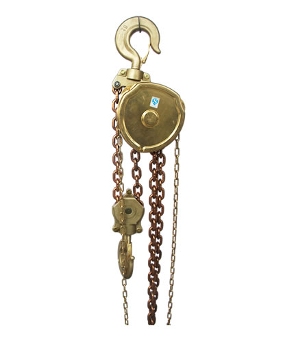 防爆手拉葫蘆和普通手拉葫蘆主要區(qū)別在于防爆手拉葫蘆材質(zhì)是用鋁青銅和鈹青銅作為毛坯,手拉葫蘆外殼采用的也是H62銅合金材料進(jìn)行鍛造。手拉葫蘆受力摩擦部位包括構(gòu)成手拉葫蘆的起重輪、墻板、手鏈輪、掛鉤、齒輪、齒輪軸都是采用鋁青銅和鈹青銅合金材料制成的,為什么采用這個(gè)材料作為防爆手拉葫蘆原料,主要是鈹青銅合金、鋁青銅合金在撞擊或摩擦?xí)r不會發(fā)生火花,所以十分適合用來制造在易燃、易爆、強(qiáng)磁以及腐蝕性場合下安全使用。主要是合金在含30%的氧或6.5-10%甲烷空氧中承受561LJ的沖擊能,沖擊20磁,都未發(fā)生火花和燃燒。這也就是防爆手拉葫蘆和普通手拉葫蘆區(qū)別所在吧。