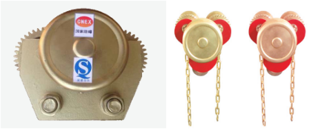 首先來(lái)看防爆手推單軌行車,它主要由齒輪、擋板以及吊環(huán)組成。使用時(shí)將齒輪間距調(diào)整成適合工字鋼的距離,然后固定在工字鋼上,吊環(huán)用于懸掛起重吊裝設(shè)備,待重物懸掛起吊穩(wěn)定后用手推動(dòng)起吊重物,使其行走在工字鋼上,完成起吊運(yùn)輸過(guò)程。